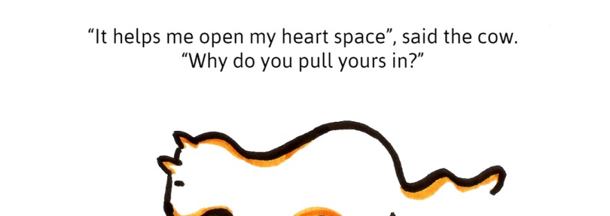 “Why do you always drop your belly?” the cat asked the cow. “It helps me open my heart space”, said the cow. “Why do you pull yours in?” The cat let out a friendly pur. “To give you space to move from.”